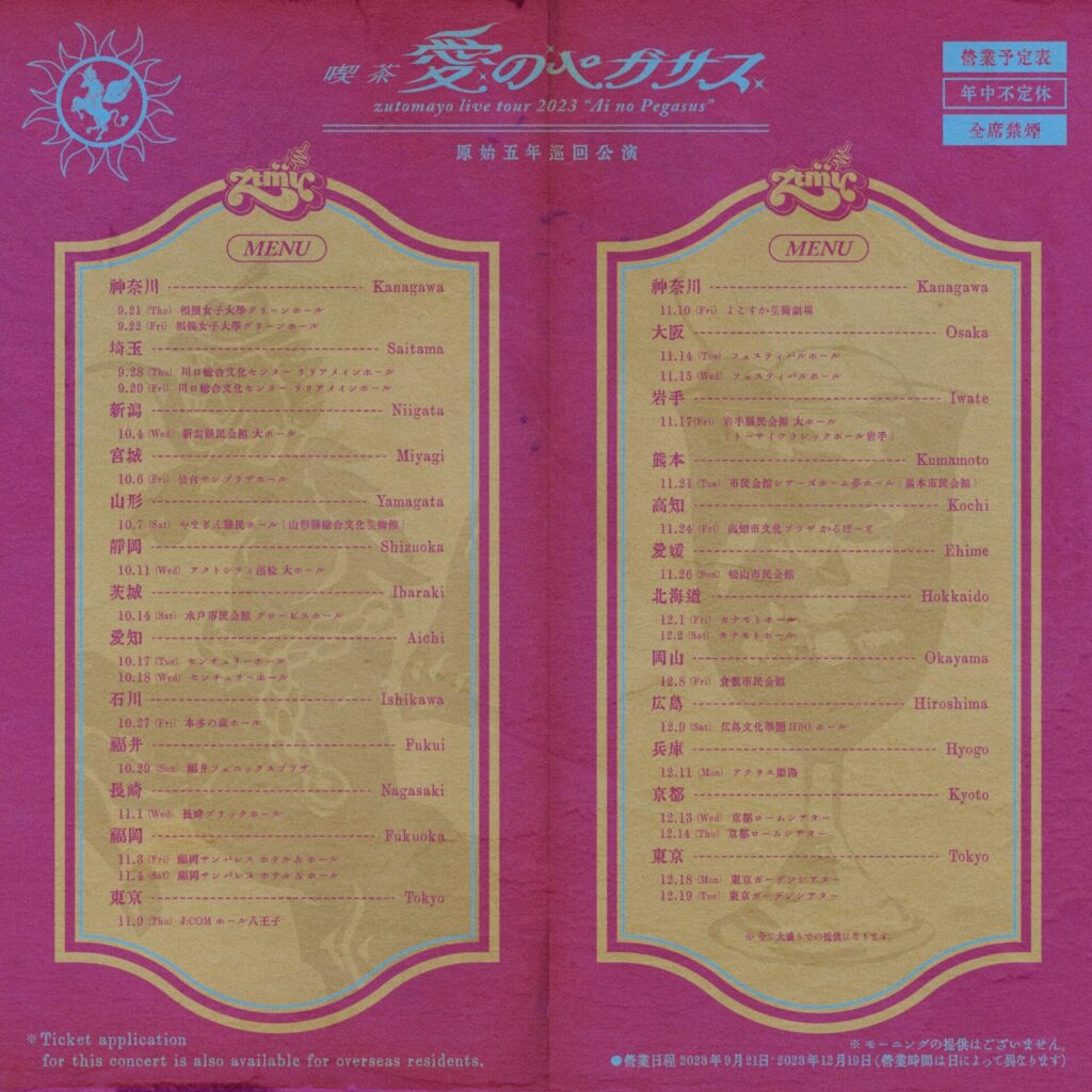 【ずっと真夜中でいいのに。】 <喫茶・愛のペガサス>コラボレーションのお知らせ 作品情報 2023.12.23 ずっと真夜中でいいのに。原子五年巡回公演「喫茶・愛のペガサス」にて愛のペガサス仕様のクリームソーダとグッズを一部作成させていただきました。 ずっと真夜中でいいのに。公式HP